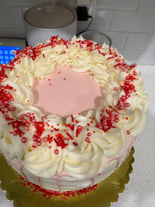 This listing is for a 3 layered, funfetti flavor cake. The cake has a white chocolate drip that can be colored to compliment your cake color of choice. Topped off with some delicious sprinkles!