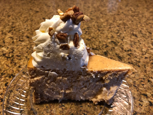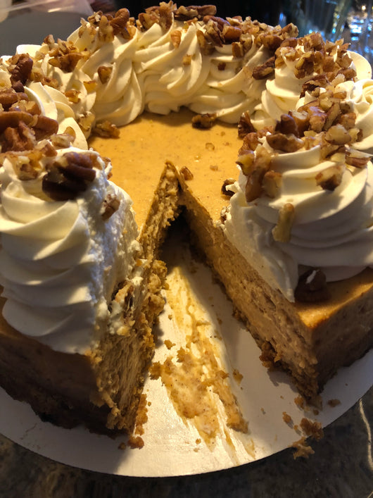 HELLO FALL! This cheesecake was inspired by both my favorite season (fall), and favorite month (September). I decided to pair both my favorite veggie (sweet potato) with my favorite dessert (cheesecake). This cheesecake comes with a side of maple praline glaze that you can pour over the top of the cheesecake, to take the flavors to another level!